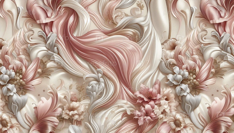 Итальянский дизайн розового атласа абстрактного узора для модного платья, Ai generated image