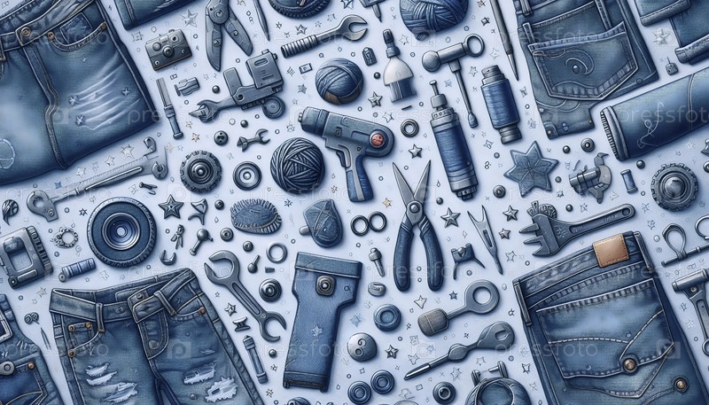 Джинсы синий цвет Образец детской комнаты, Ai generated image