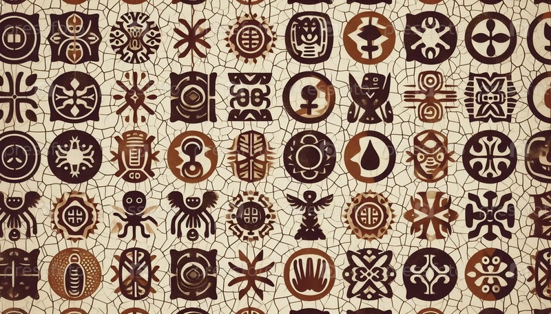Классический африканский восковый принт с символами adinkra бесшовный шаблон, Ai generated image