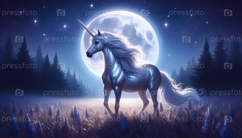 Единорог в лунную ночь, Ai generated image