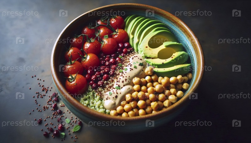 Быстрая и здоровая миска с зерном, Ai generated image
