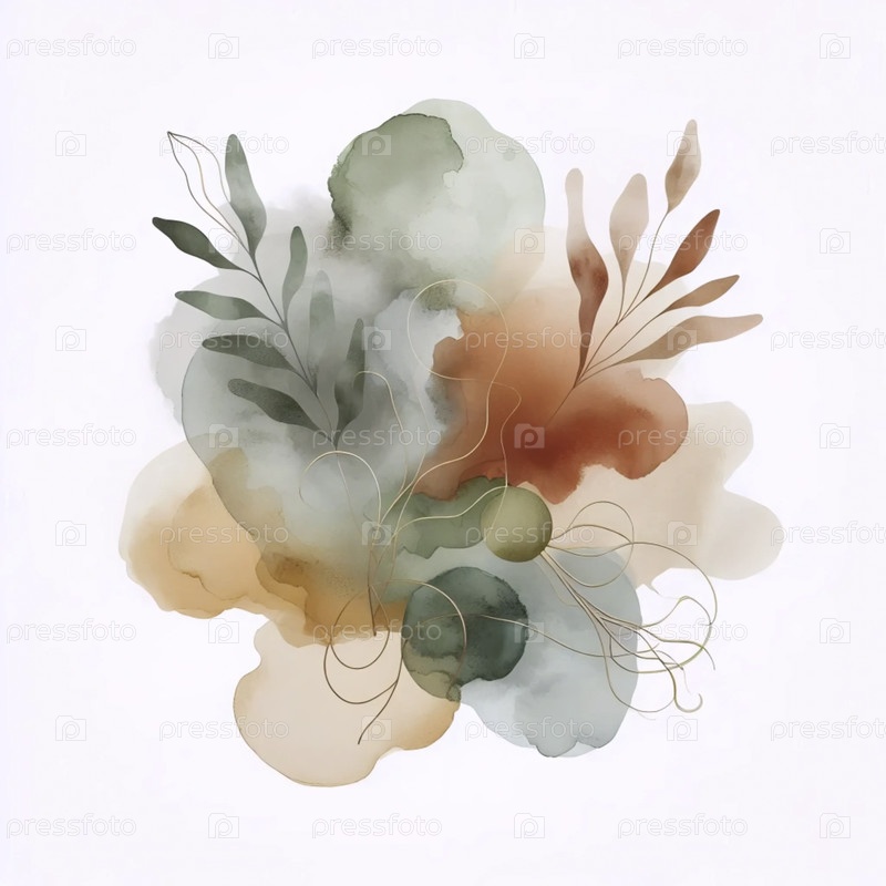 Бохо ботанический настенный принт с абстрактным акварелем, Ai generated image