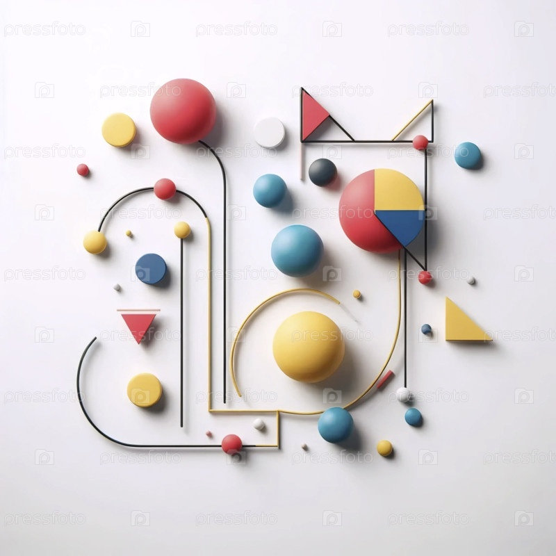 Минималистская геометрическая кошка и печать из шаров, Ai generated image