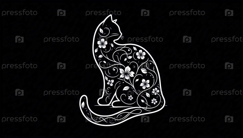 Минималистский печатный силуэт цветочного кота, Ai generated image