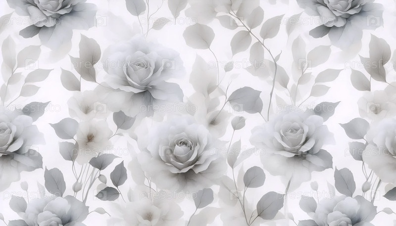 Абстрактный акварельный цвет белой розы свадебный бесшовный шаблон, Ai generated image