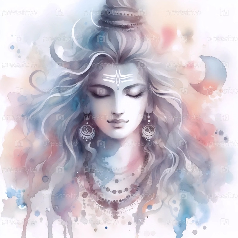 Стиль акварели Господа Шивы, Ai generated image A