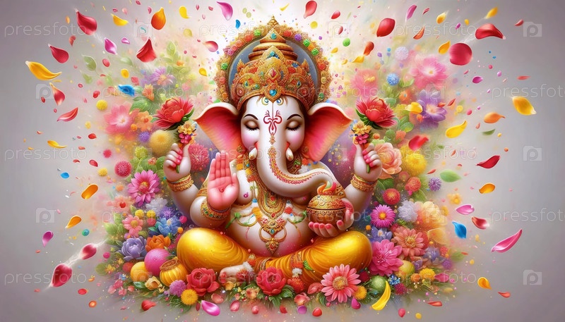 Господь Ганеша в дожде листьев, Ай создал изображение