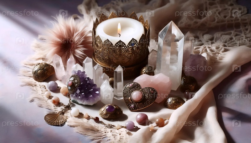 Мистический кристаллический натюрморт, Ai generated image