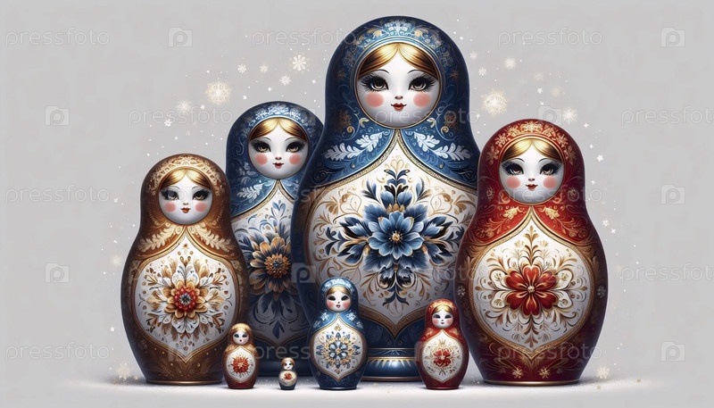 Российский флаг в традиционном искусстве куклы матриошка, Ai generated image