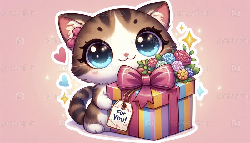 Милая кошка с наклейкой для подарка в подарок, Ai generated image