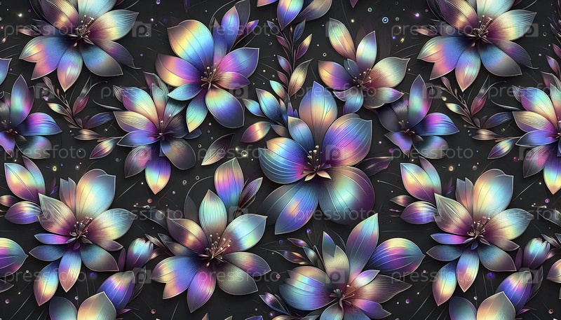 Голографический цветочный цифровой бумажный бесшовный шаблон, Ai generated image
