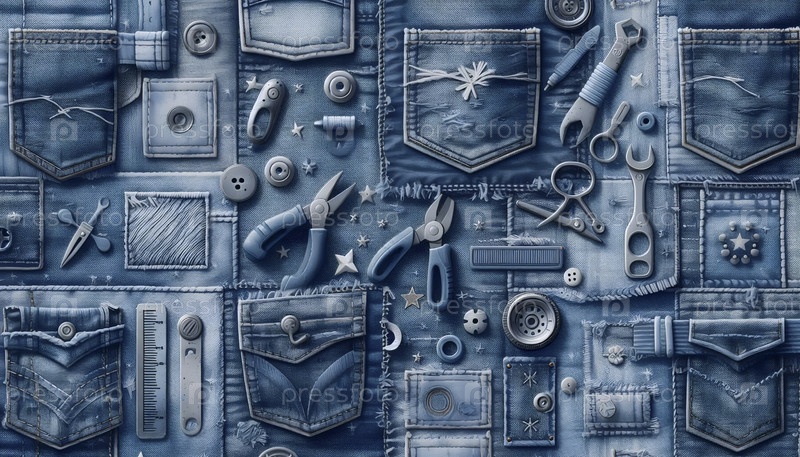 Джинсы синий цвет Образец детской комнаты, Ai generated image