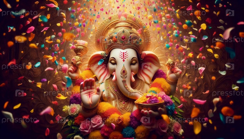 Господь Ганеша в дожде листьев, Ай создал изображение