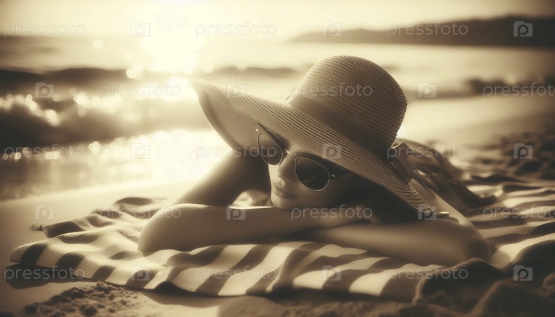 Сепия тон пляжный полотенце элегантность искусство, Ai generated image