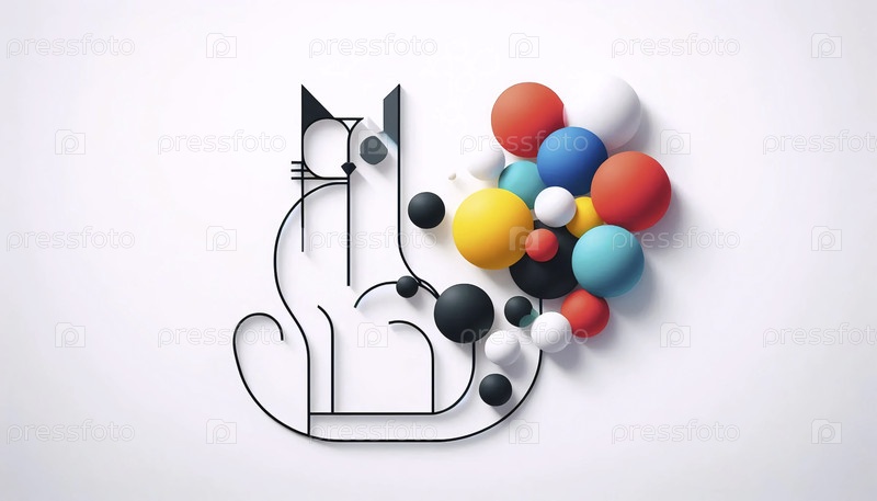 Минималистская геометрическая кошка и печать из шаров, Ai generated image