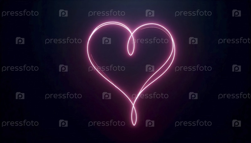 Непрерывно светящееся художественное сердце неоновой линии, Ai generated image
