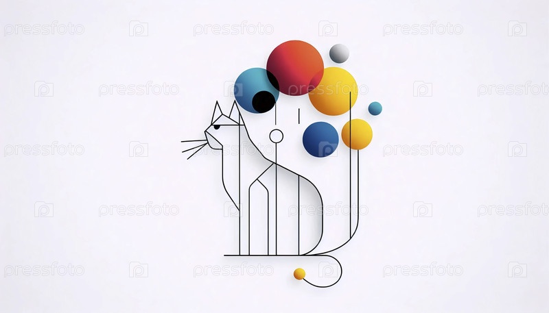 Минималистская геометрическая кошка и печать из шаров, Ai generated image