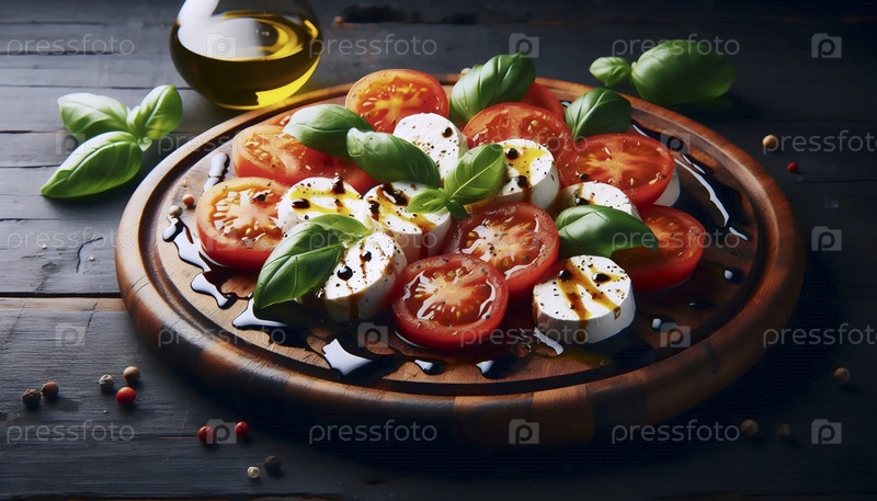 Простой салат каприз на деревянной доске, Ai generated image
