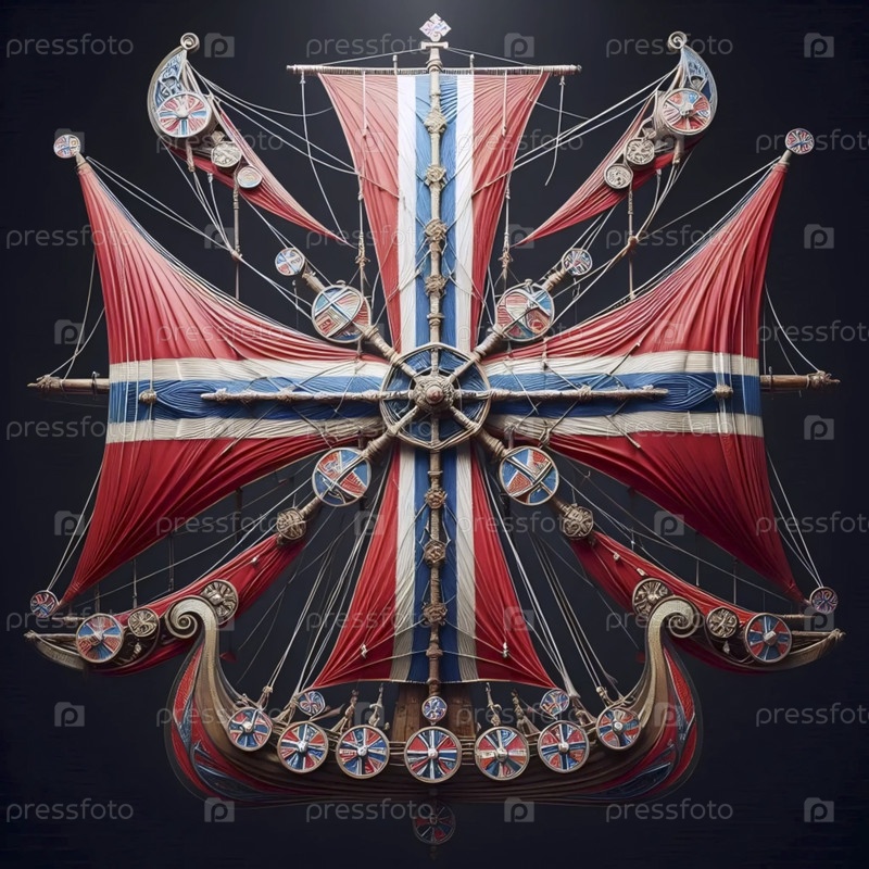 Норвежский флаг из элементов корабля викингов, Ai generated image A