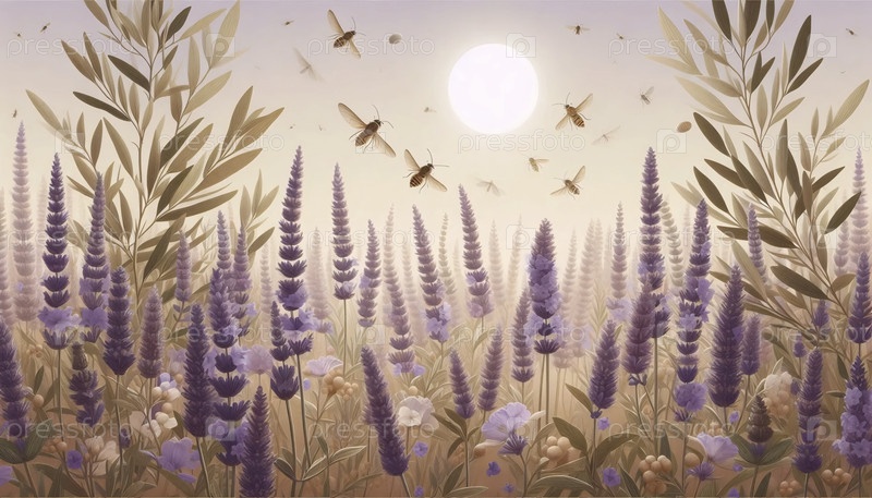 Провансальное поле лаванды бесшовный шаблон, Ai generated image