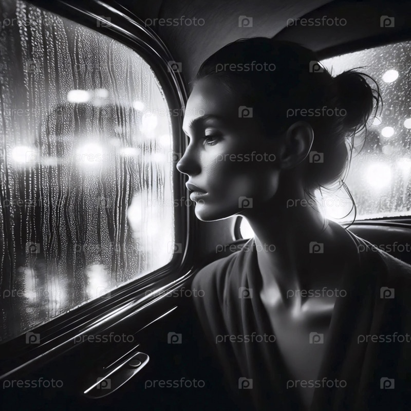 Дождливый портрет из окна такси, Ai generated image
