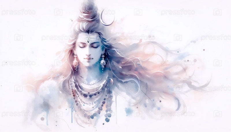 Стиль акварели Господа Шивы, Ai generated image A