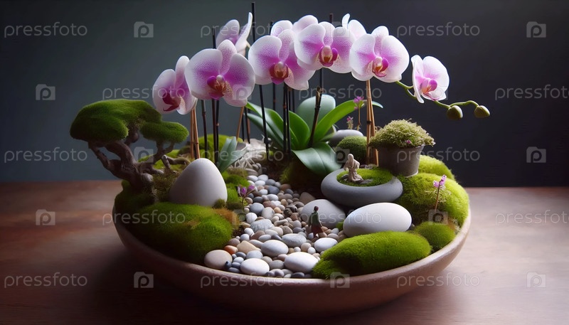 Орхидея с камнями и мхом, Ай создал изображение