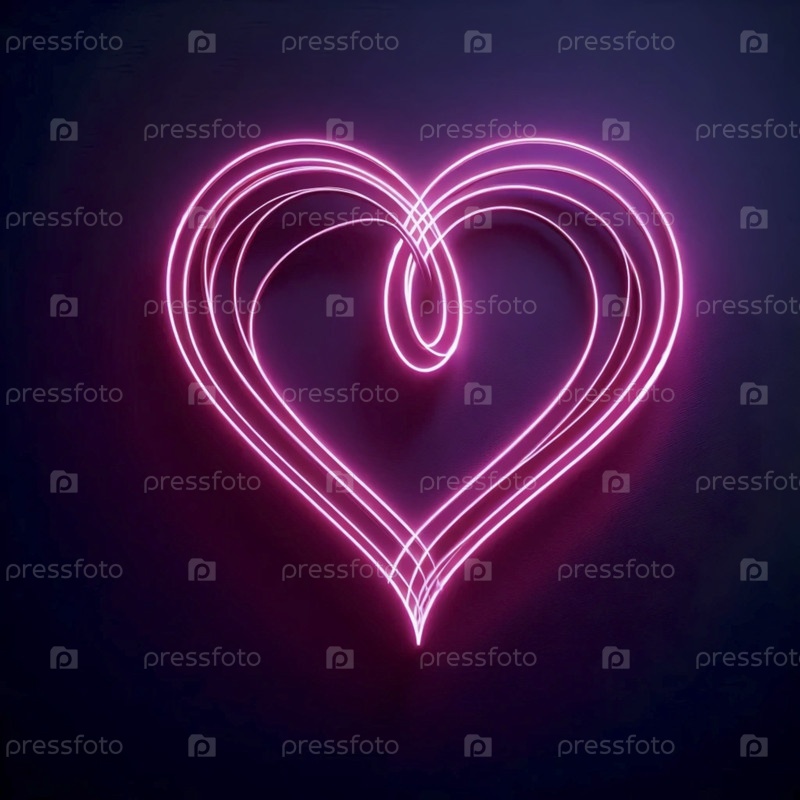 Непрерывно светящееся художественное сердце неоновой линии, Ai generated image