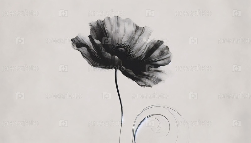 Черная цветовая фреска с абстрактным принтом мака, Ai generated image