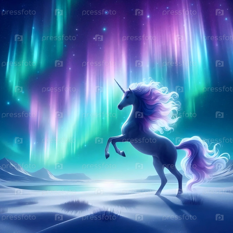 Единорог с северными сияниями, Ai generated image