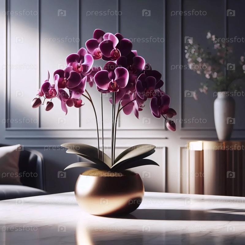 Фиолетовая орхидея в золотом горшке, Ай создал изображение