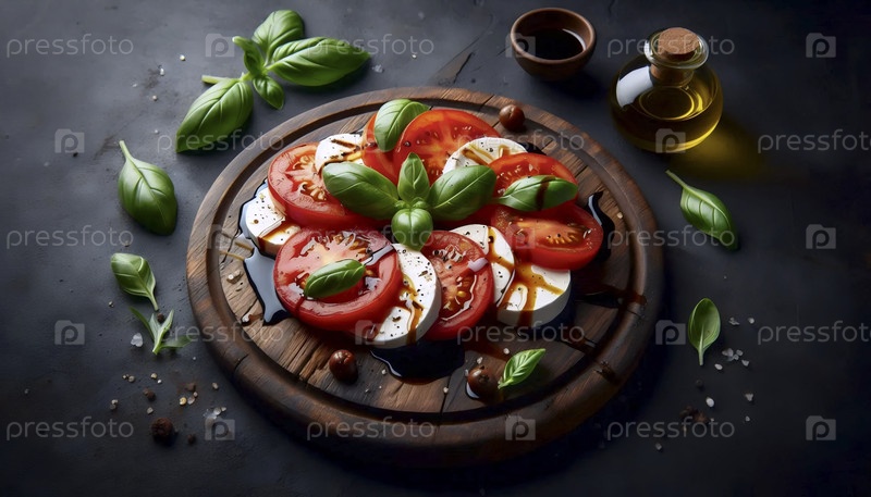 Простой салат каприз на деревянной доске, Ai generated image