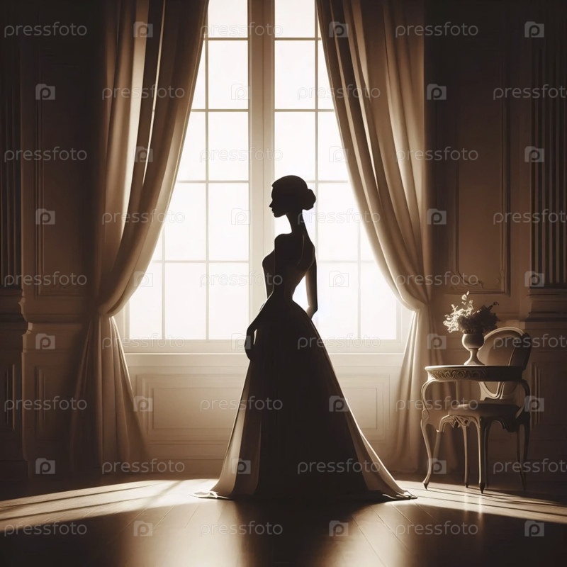 Силуэт беременной женщины сепийского тона, Ai generated image