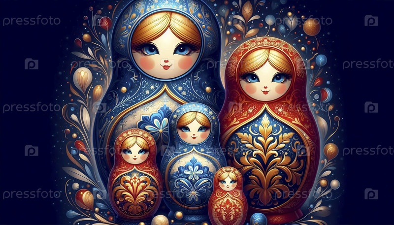 Российский флаг в традиционном искусстве куклы матриошка, Ai generated image
