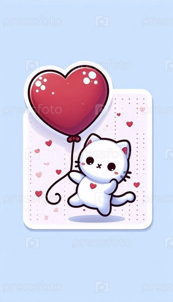 Милый наклейка котенка, держащего воздушный шар, Ai generated image
