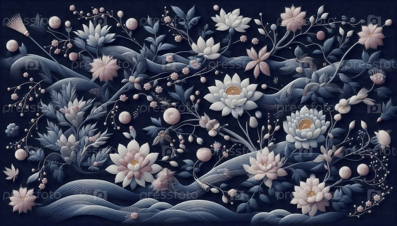 Японский шаблон вышивки с бесшовным дизайном, Ai generated image