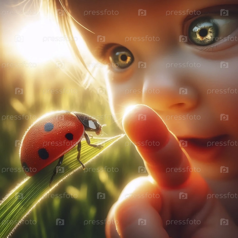 Первая встреча малыша с летающей бабочкой, Ai generated image