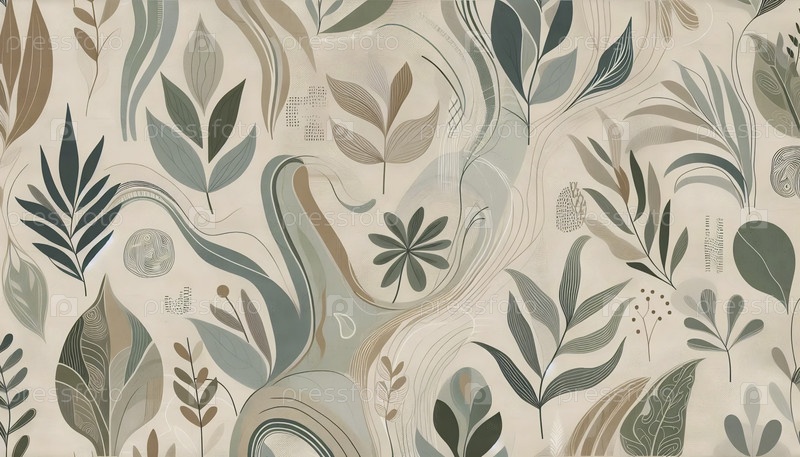 Сальвеевый зеленый шаблон бохо бесшовный дизайн, Ai generated image