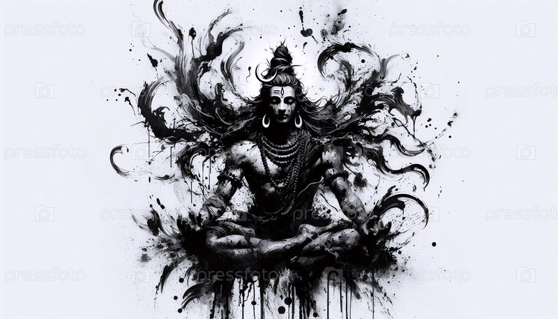 Господь Шива в стиле распыливания чернилами, Ai generated A image