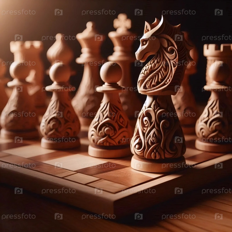 Ручно выполненный деревянный шахматный набор, Ai generated image