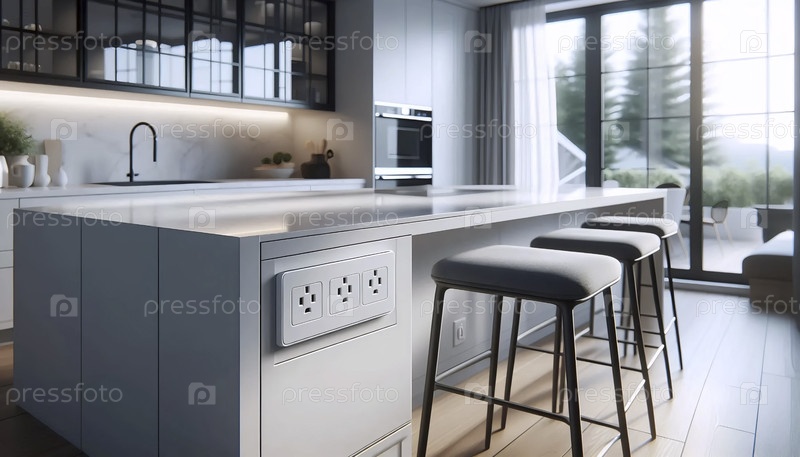 Кухня с скрытыми всплывающими розетками, Ai generated image