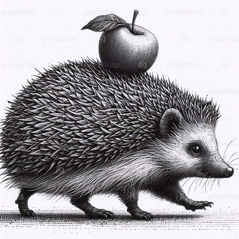 еж с яблочным чернильным рисунком