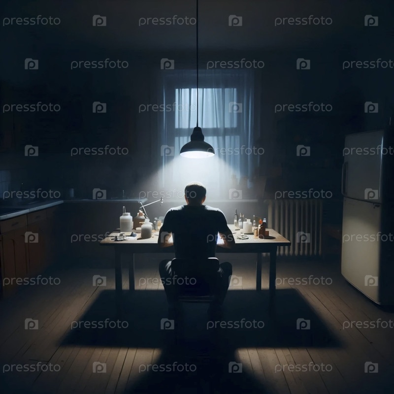 Для более широкого снимка, показывающего всю сцену одинокой кухни, Ай создал изображение