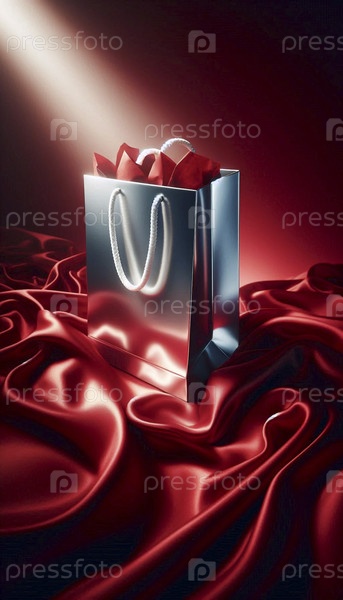 Мокет глянцевой готовой подарочной сумки с закрученными бумажными ручками, Ai generated image