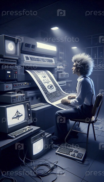 Компьютерный гений 1980-х годов с линейным принтером, Ай создал изображение