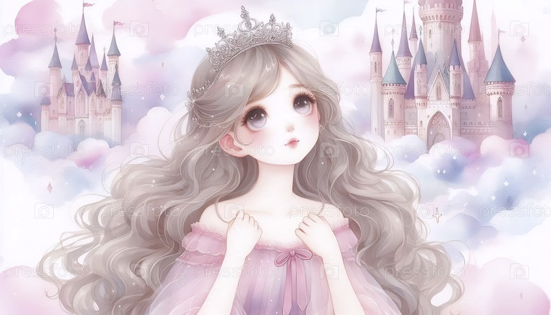 Застенчивая принцесса с акварельным художественным оттиском Crown, Ai A generated image