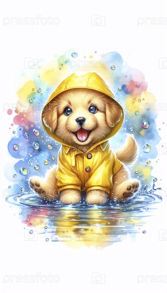Щенок в дождевом пальто акварельный арт-принт, Ai generated image