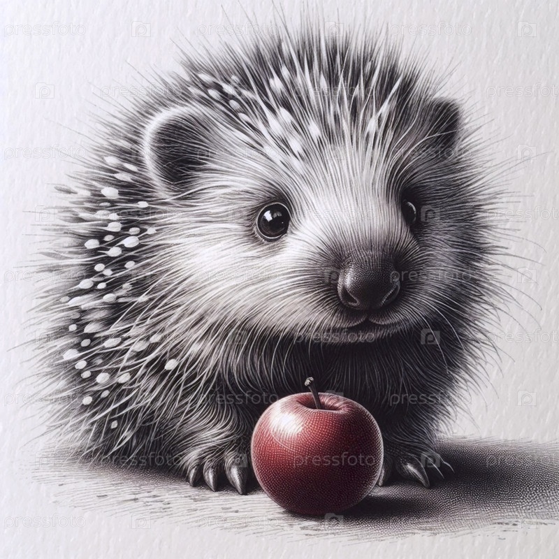 Маленький Козерог с яблоком на перьях чернил рисует художественную печать, Ai generated image