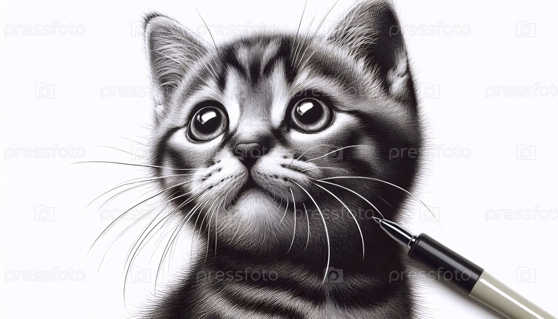 Котенок чернила рисование арт-принт, Ai generated image A