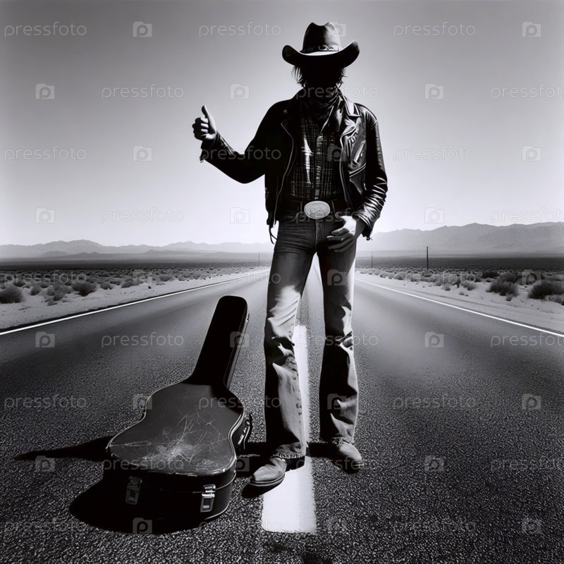 Автостопщик с гитарным чехлом, Ай создал изображение